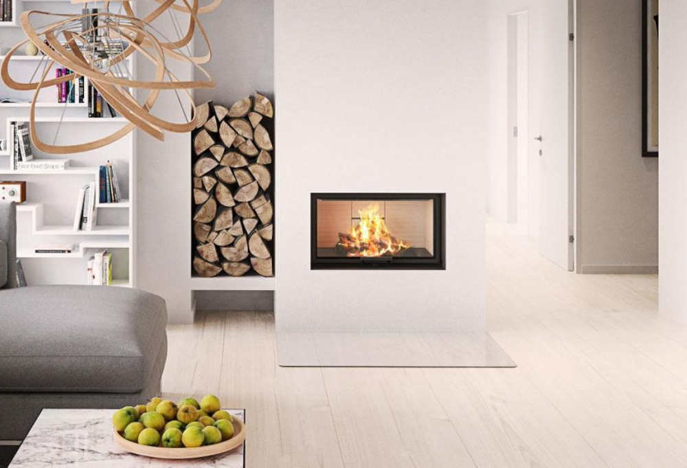 Est-il possible de concevoir un poêle à bois qui est plus simple que le Visio 1? Probablement pas. Car, ici, vous ne voyez que les flammes. Il y a juste un cadre très petit et discret en acier noir ou inoxydable entourant le verre à l’avant du poêle.