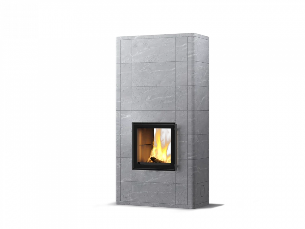 Salvo rappelle par son design le poêle Lampo. L’élégance du poêle en stéatite Salvo réside dans l’agencement harmonieux de ses dalles et dans ses angles arrondis. Les options de finition sont la stéatite lisse classique et la surface Grafia, sur laquelle des motifs chatoyants irréguliers ont été réalisés au jet d’eau. La porte moderne de forme carrée offre une vue superbe sur le feu. Il est possible d’ajouter sur la partie avant du poêle Salvo des plaques décoratives situées en dessus et en dessous de la porte, dont l’idée est la rencontre stylée de surfaces en stéatite différentes.